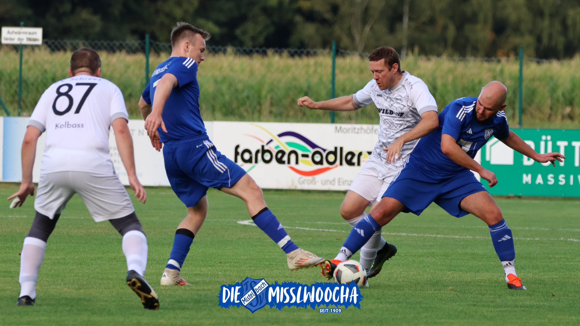 Die Rollenverteilung war schnell klar: Die Misslwoocha gingen hoch motiviert von der Kerwa ans Werk und die Schreezer waren bemüht um die defensive Stabilität. Nach drei Minuten tankte sich Nawzat Mohamd über die linke Seite durch, bediente in der Mitte den frei stehenden Felix Pietzcker, der zur frühen 1:0-Führung einschieben konnte. Kurze Zeit später hatte Nawzat Mohamad selbst einen Treffer auf dem Fuß, entschied sich jedoch für einen, statt zwei Kontakte und vergab so aus aussichtsreicher Position. In der 11. Minuten bewiesen die Jungs von Trainer Klaus Fiedler Köpfchen. Nach einem schönen Angriff, ausgehend von Paul Weber über Marvin Unterburger und Felix Pietzcker, kam die Flanke zu Marcel Hofmann, der zum 2:0 einköpfte.